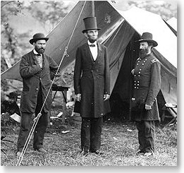 | Allan Pinkerton, an early American Private Investigator, with Abraham Lincoln and General John Alexander McClernand, Commander of the Army of The Mississippi during the Civil War. |